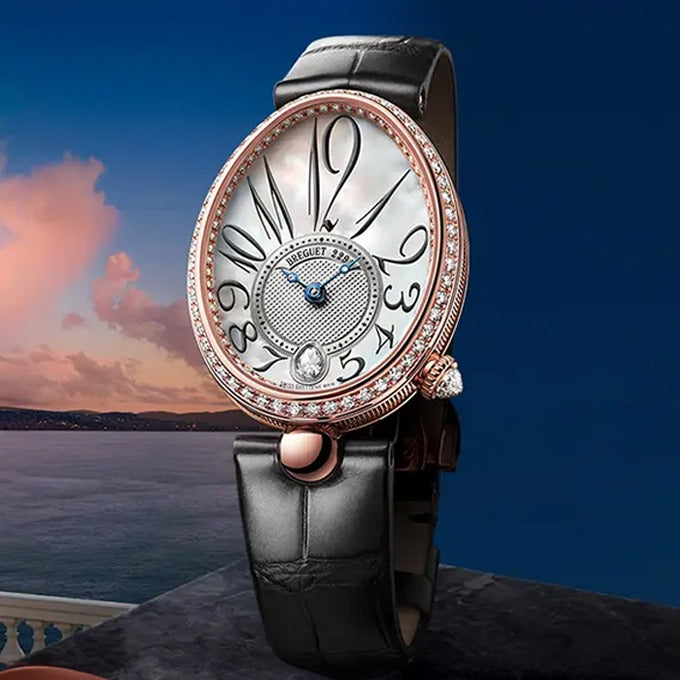 The pieces from this collection can easily be recognised from the oval shape of their case, and their round central lug. The hours chapter is still slightly off-centred towards 6 o’clock. This collection features self-winding movements exclusively, designed for the specific needs of the Reine de Naples models.